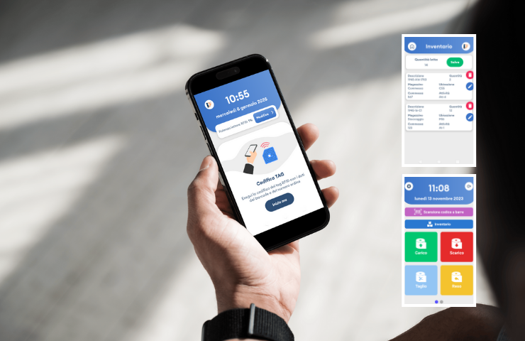 Funzioni principali: Inventario RFID con esportazione CSV, verifica congruenza da lista precaricata con segnalazione mancanze/doppi, ricerca di uno specifico tag RFID, scrittura/codifica di tag RFID, lettura ottica di barcode 1D e QR code, gestione configurazioni operative per singola postazione o profilo.